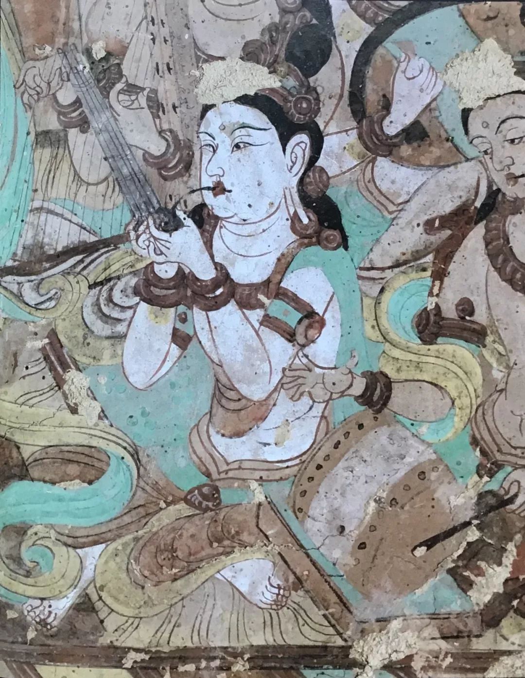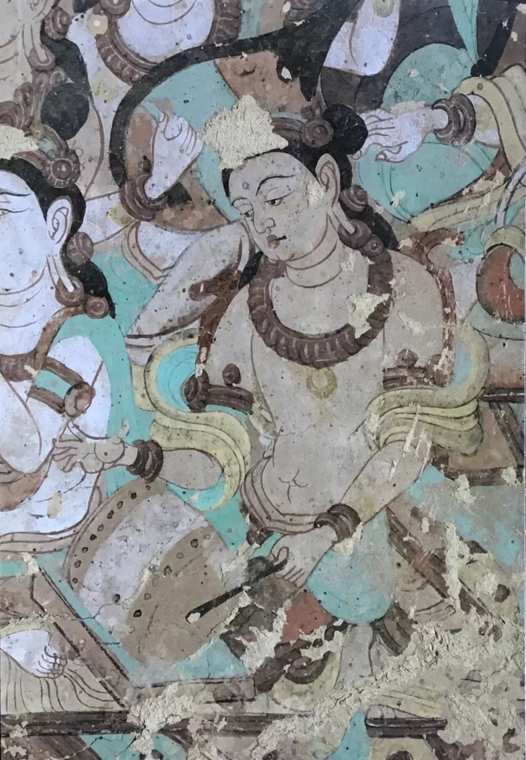 图6 敦煌莫高窟第112窟南壁《金刚经变-乐舞》 在人物塑造方面,他认为敦煌壁画不依靠明暗法塑造人物形体及质量感,其效果与欧洲文艺复兴时期大师的杰作相比毫不逊色。他高度称赞敦煌壁画的人体描写,认为当时的工匠运用极其单纯的色彩和线条,描绘出肉体细腻的色调和弹性,实在令人折服。