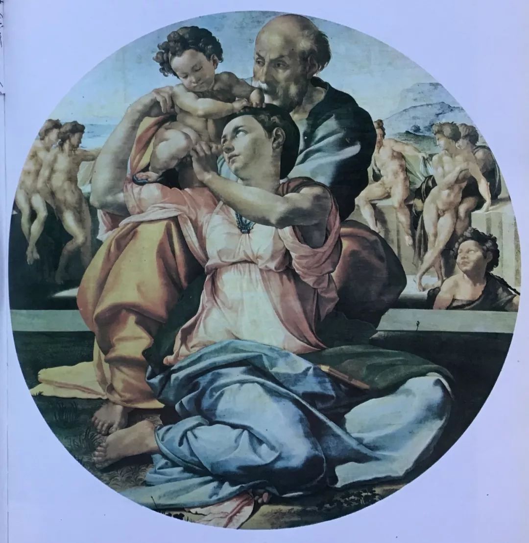 图7 米开朗基罗《圣家族》 敦煌壁画给董先生带来巨大的震撼,他说:“试想当时石窟里的壁画,在许多油灯和烛光的闪耀下,那富丽的色彩,何等辉煌,它充满激情,牵动着人们的心灵。这是历代无名画工精心创作,经过长期的熏陶,便形成了人们对绘画艺术的欣赏习惯。它就是广大人民群众所喜闻乐见的民族风格。” 敦煌莫高窟壁画不完全是中国的艺术,它是东西方文化的交融。敦煌莫高窟壁画在我国汉魏艺术的基础上(西魏有传统的色晕法进入敦煌),吸收了希腊、罗马、波斯、印度的艺术精华,形成一种新的风格,也就是我们今天所看到的风格。